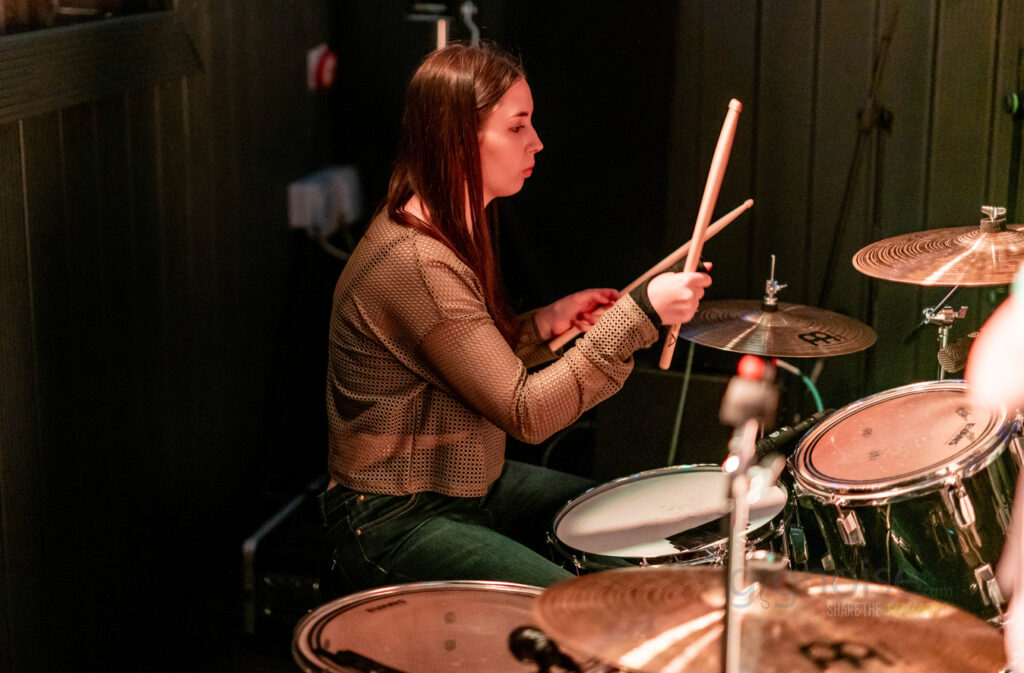 Next to take the stage were Shining in Carrie, who shifted the night’s sonic palette firmly into alt-rock territory. Where the opener favoured bluesy grit, this was something moodier and more expansive — chiming guitars, punchy rhythms and the kind of dynamic build-ups that thrive in a packed room. They delivered a tight, confident set, but it was their original track “Senseless” that truly cut through the noise for me.